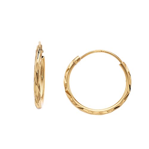 24k Yellow Gold Hammered Hoop Earrings 7 1g