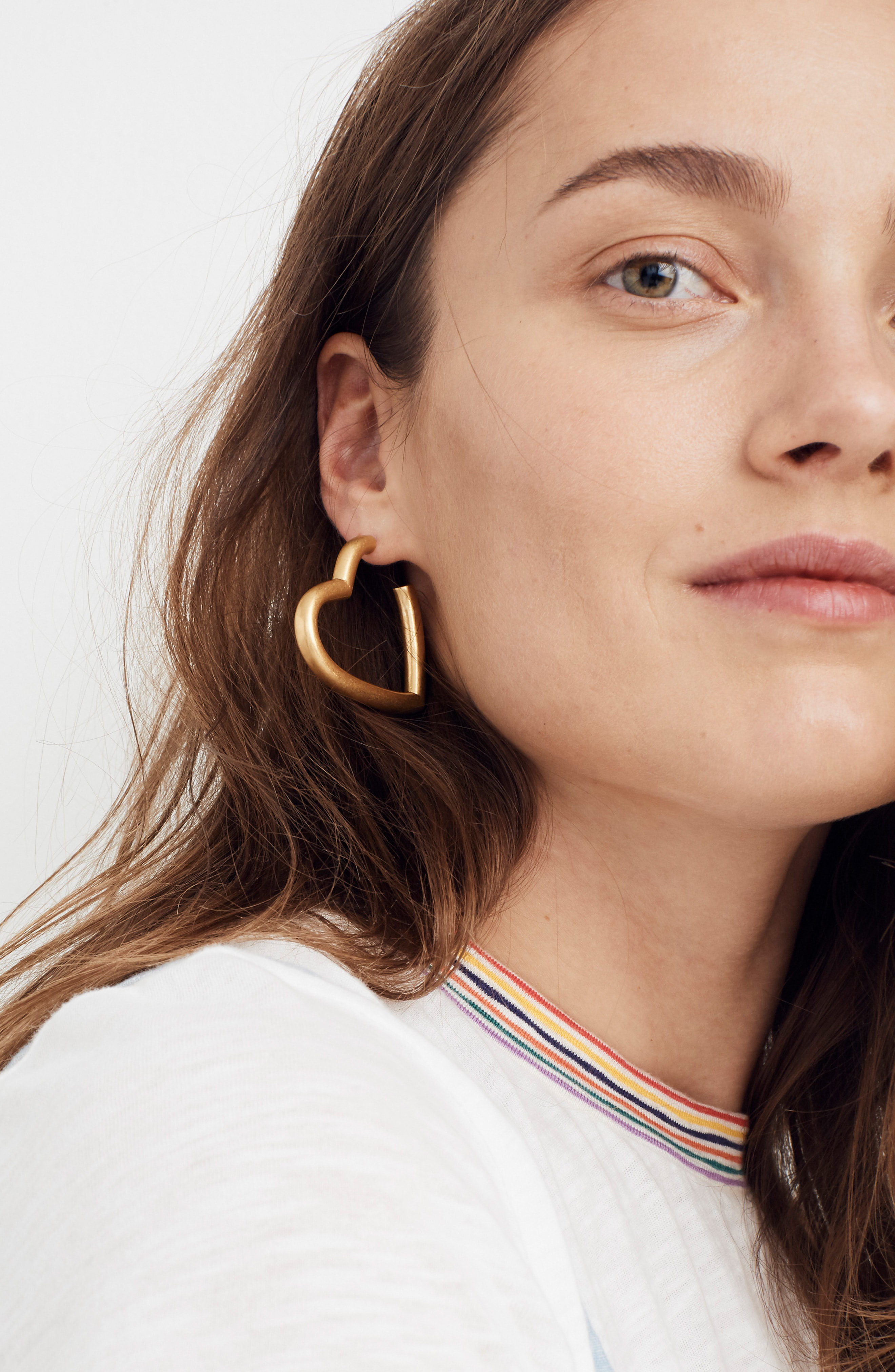 Gold Bamboo Chunky Heart Hoop Earrings Aj28928 9 03