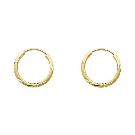 Yellow gold endless hoop earrings. These hoops are 14k yellow gold. Buy 14k yellow gold womens endless continuous round tube hoop earrings 1mm thick 10mm 20mm basic diamond cut 12mm. To care for lightweight hoops earrings use a gentle polish to help maintain its delicate shine.