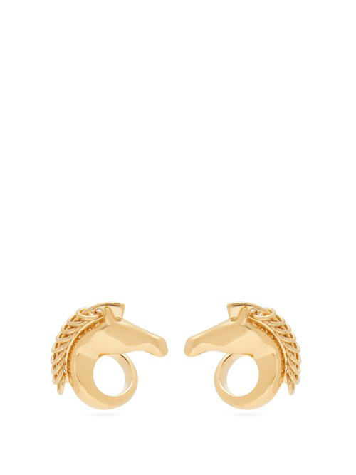 Chloe Horse Head Gold Tone Earrings Womens Gold