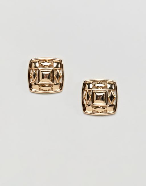 Gold Square Textured Chunky Drop Earrings Also Depop