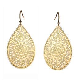 Heart Honeycomb Lace Dangle Earrings 18k Gold Plated