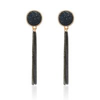 Chain Tassel Long Dangle Earrings Gold Color Maxi Hanging Drop Earring For Women With Black Stones Bohemian Bride Party Jewelry
