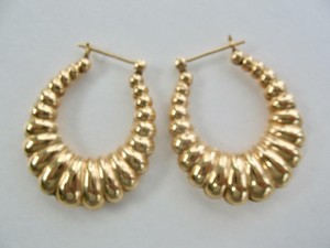 Details About Vintage Estate 14k Yellow Gold Scallop Shell Hoop Earrings 10mm 3 6 Grams