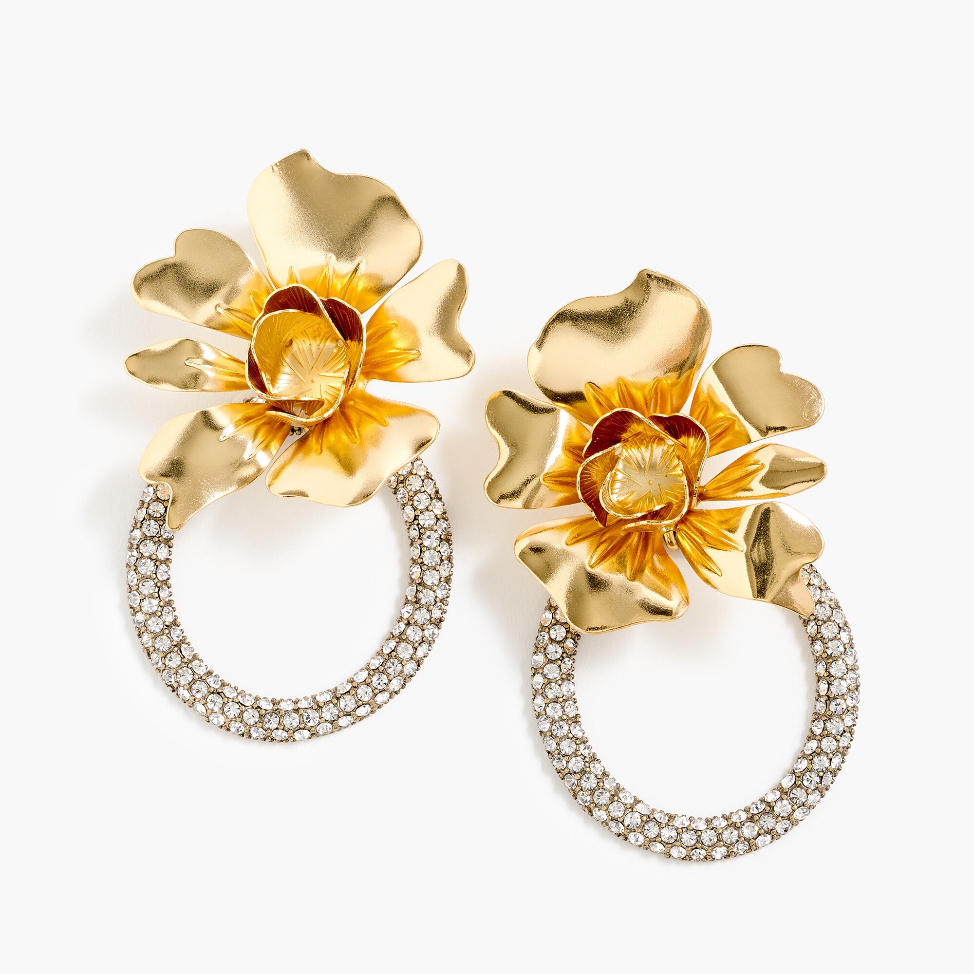 J Crew Flower And Crystal Door Knocker Earrings