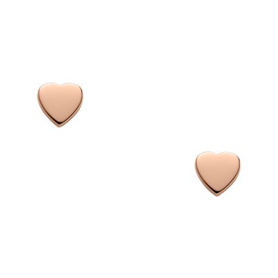 Fossil Women Heart Studs Rose Gold Post Stainless Steel Cz
