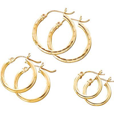Fingerhut 10k Gold 3 Pair Set Of Hoop Earrings