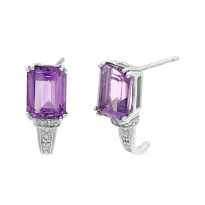 Genuine Amethyst And Diamond Accent 10k White Gold Earrings