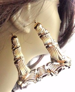 Details About Square Bamboo Earrings Gold Tone Hoop Earrings 4 Inch Hoop
