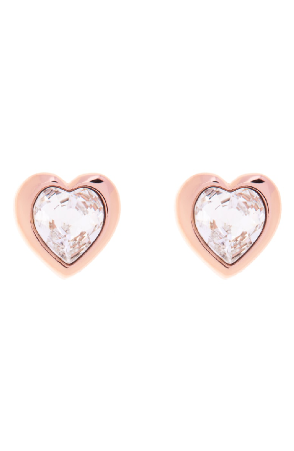Han Swarovski Crystal Heart Stud Earrings In Rose Gold Crystal