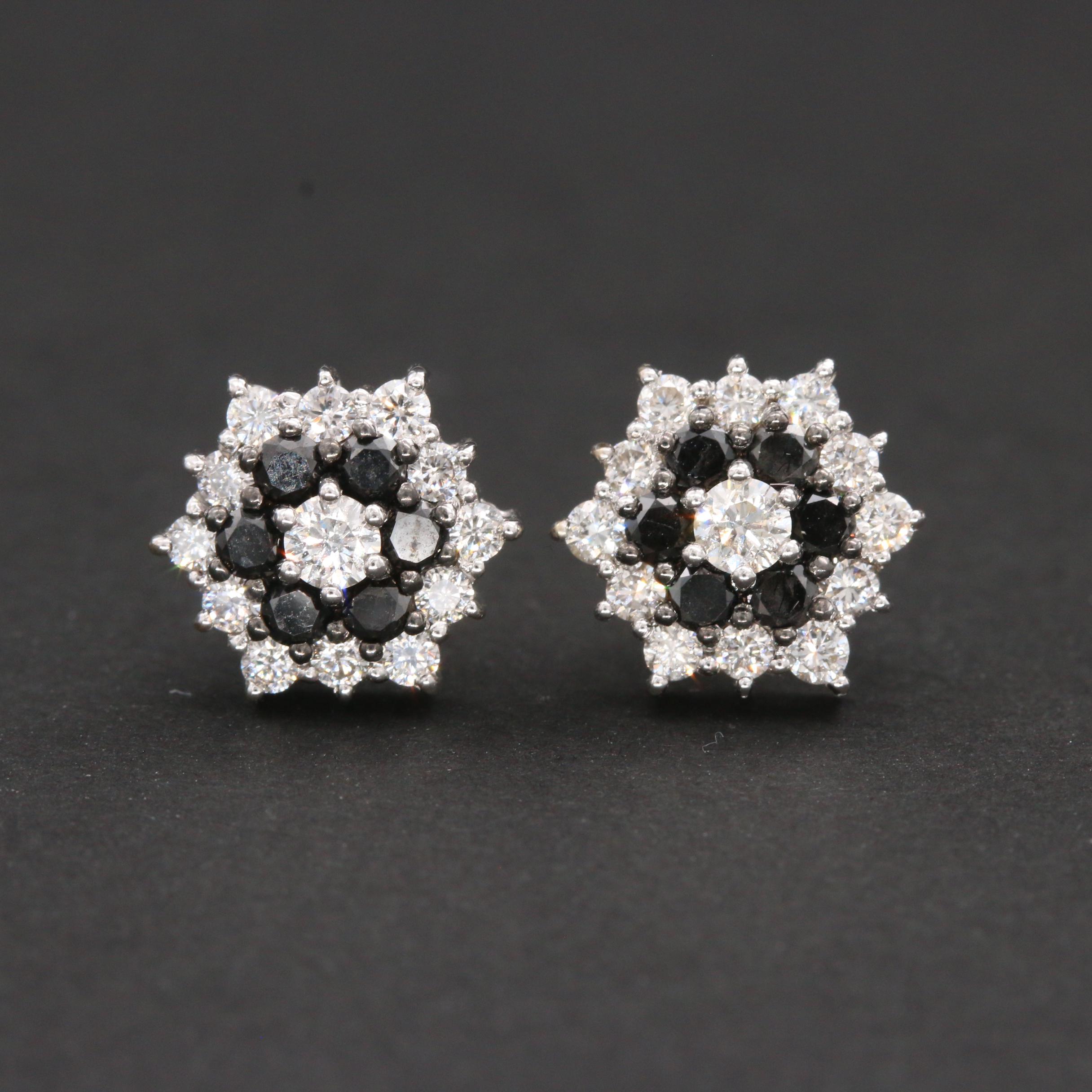 14k White Gold Diamond And Black Diamond Stud Earrings