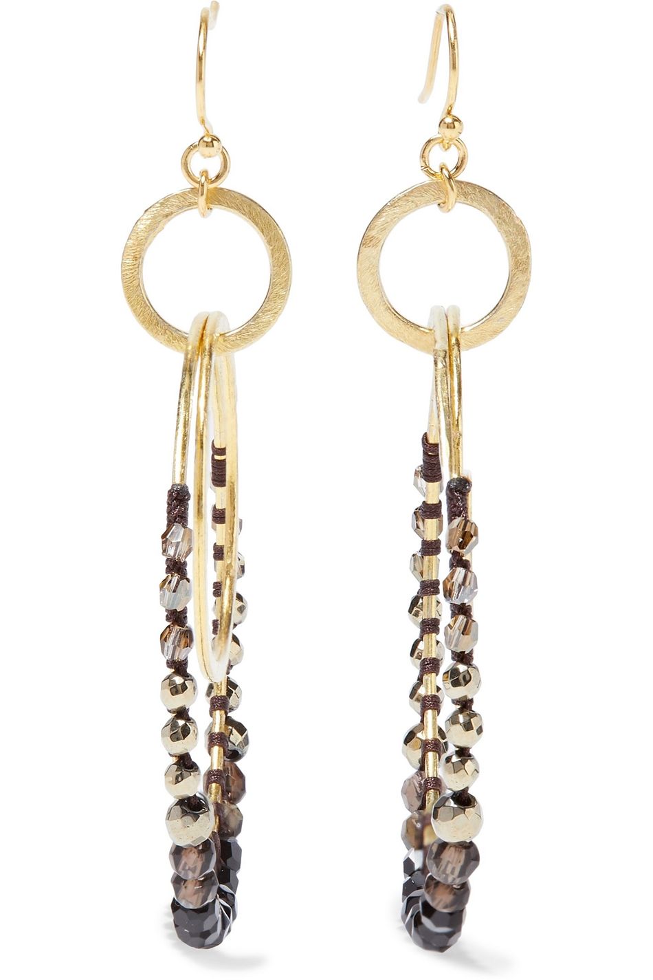 Gold Tone Multi Stone And Cord Hoop Earrings