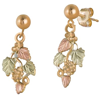 Shop guaranteed lowest prices on the largest selection of black hills gold jewelry designs from landstroms and coleman black hills gold manufacturers located in rapid city sd the gateway to the black hills. Black hills gold feather earrings black hills gold earrings by mt rushmore gold10 karat gold with 12 k red gold and 12 k green gold leaves strung together to form a feather10 karat gold wire fish hook approx size 316 x 1516please allow 2 weeks before it will be ready to send. Authentic black hills gold leaf earrings with 10k gold ball posts and a 10k gold base with petite hand engraved hand placed satin finished 12k green and rose gold grape leaves.