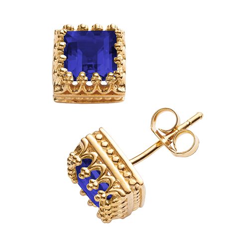 14k Gold Over Silver Crown Stud Earrings