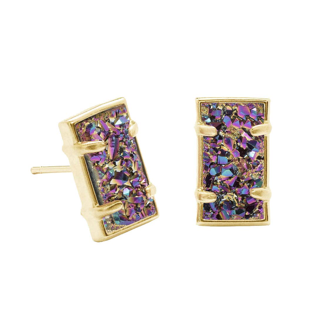 Cade Gold Stud Earrings In Iridescent Drusy Kendra Scott