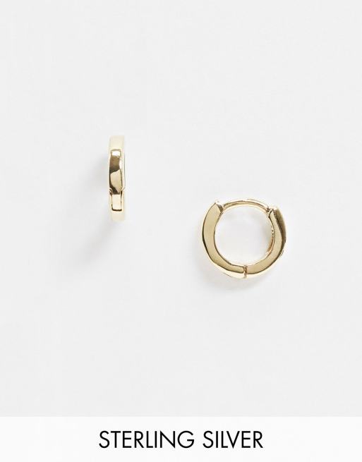 Asos Design Sterling Silver With Gold Plate Huggie Hinged Hoop Earrings
