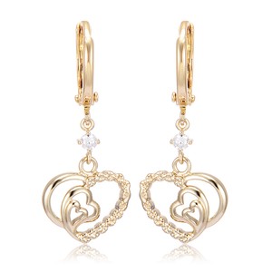 Details About Child Girls Safety Heart Drop Hoop Earrings Long 14k Gold Plated Crystal Jewelry