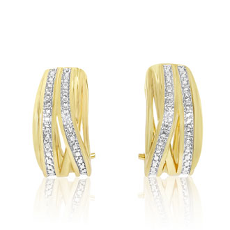18k Gold And Diamond Half Hoop Clip Back Earrings