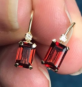 Details About 14k Yellow Gold Red Garnet Earrings W Diamonds Leverback Holidays K4l3