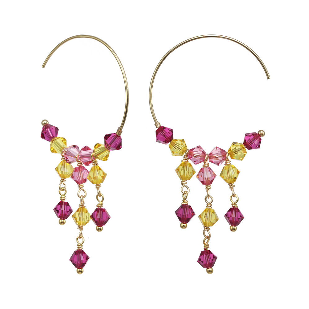 14k Gold Filled Hoop Earrings With Sunshine Multi Color Swarovski Crystal Drops Litatrading