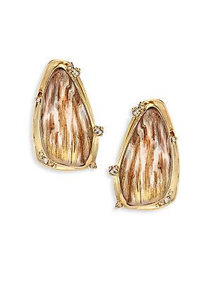 Alexis Bittar Crystal Encrusted Gold Lucite Clip On Drop Earrings