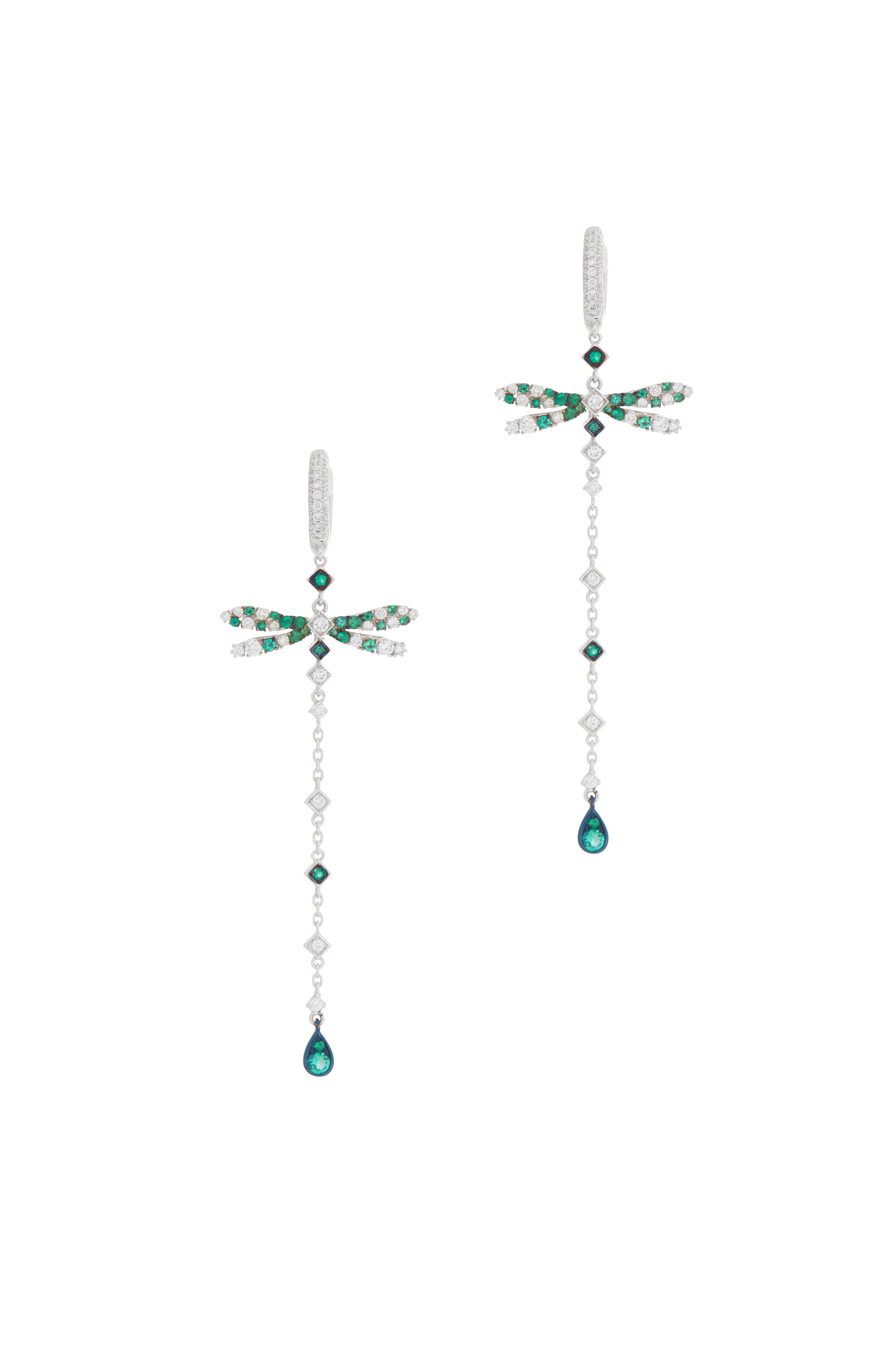 Mariani 18k White Gold Emerald Dragonfly Drop Earrings