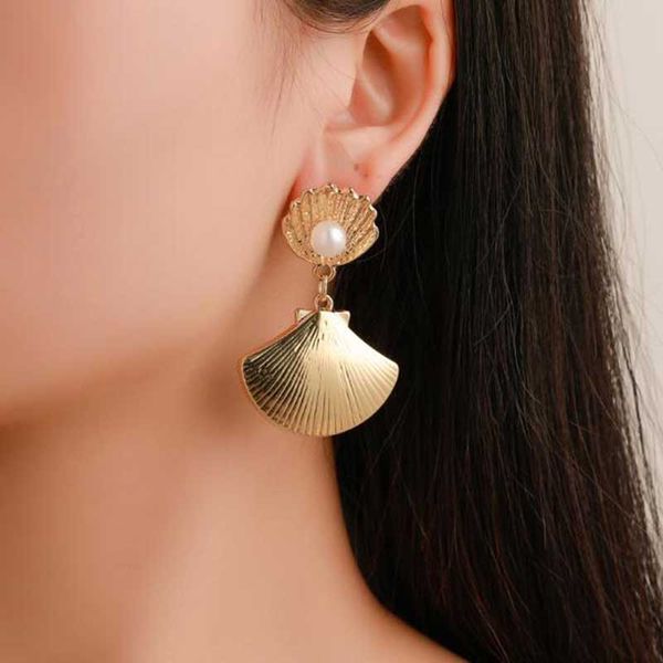 2019 Fashion 14k Gold Fan Shaped Dangle Drop Earrings Pearl Conch Shell Earring Women Girl Beach Party Jewelry From Wj2769368124 3 52 Dhgate Com
