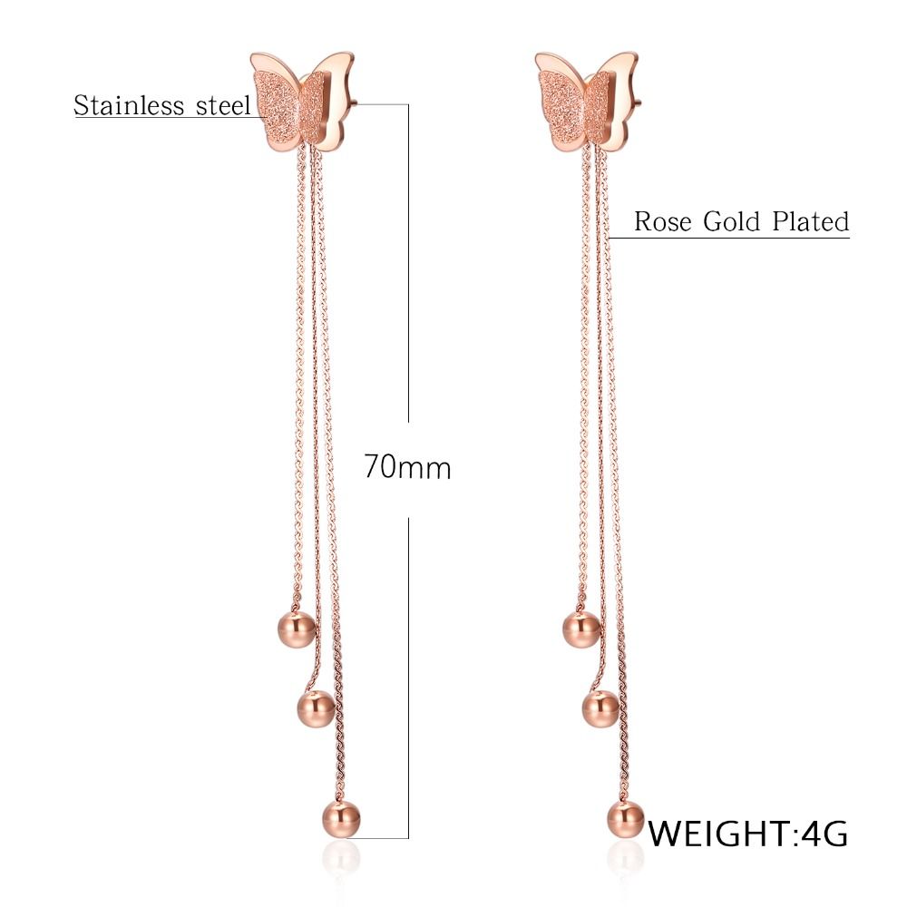 2018 Winter New Fashion Rose Gold Drop Earrings Long Tassel Butterfly Shape Women S Earring Stainless Steel Jewelry Gift Ez029