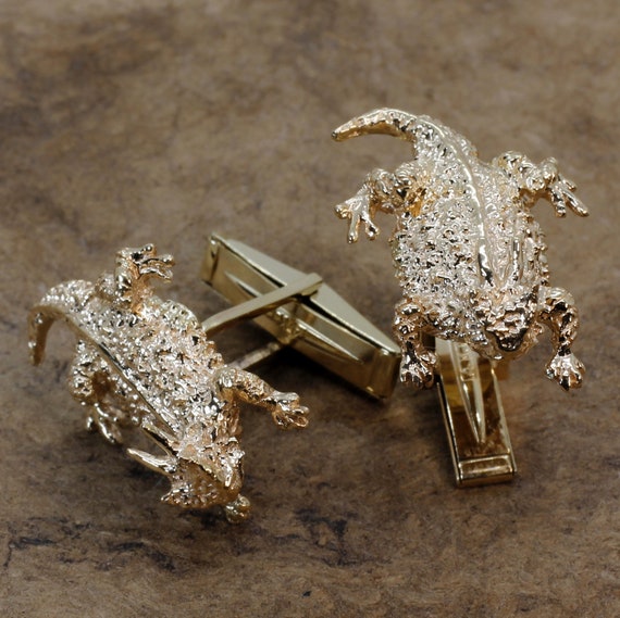 Gold Horny Toad Cuff Links Solid 14kt Gold Horned Toad Lizard Cuff Links For Men Texas Horny Toad Gift For Him Texas Horned Frog Gift