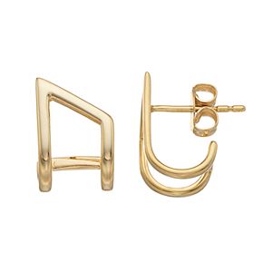 14k Gold Double Bar Linear Cuff Earrings