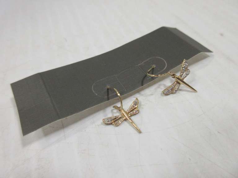 Albrecht Auctions Delicate Diamond Dragonfly Gold Earrings