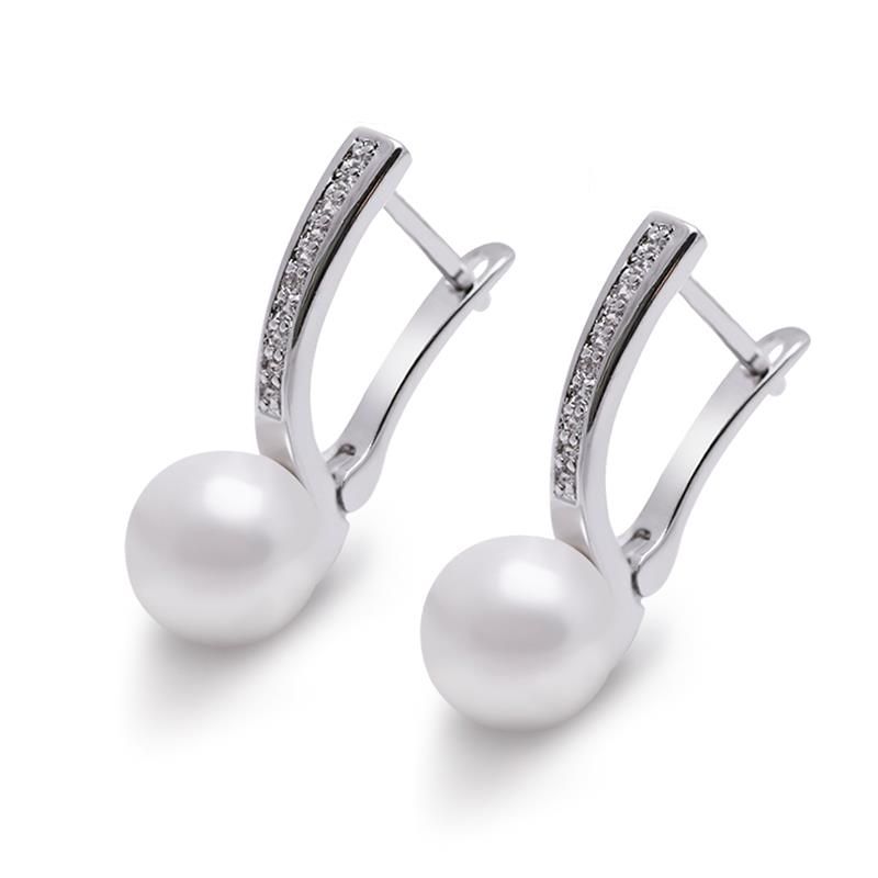 387e Smooth Simulated White Round Pearl 8 Mm Earrings Hoop For Women Elegant White Gold Plated