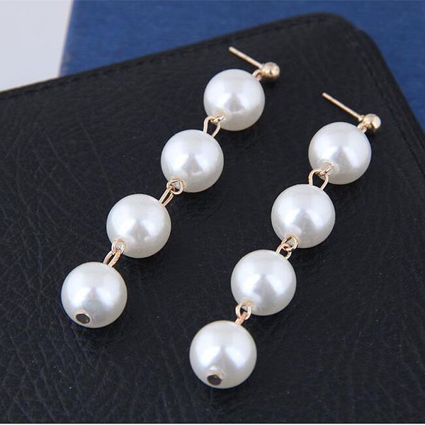 2019 Fashion Gold Silver Color White Pearl Dangle Earrings For Sensitive Ears Long Earrings For Women Girls Dangling Hypoallergenic From Vecutebeads