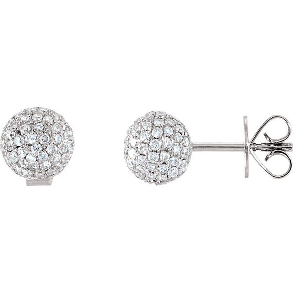 18 Karat White Gold Diamond Pave Ball Stud Earrings