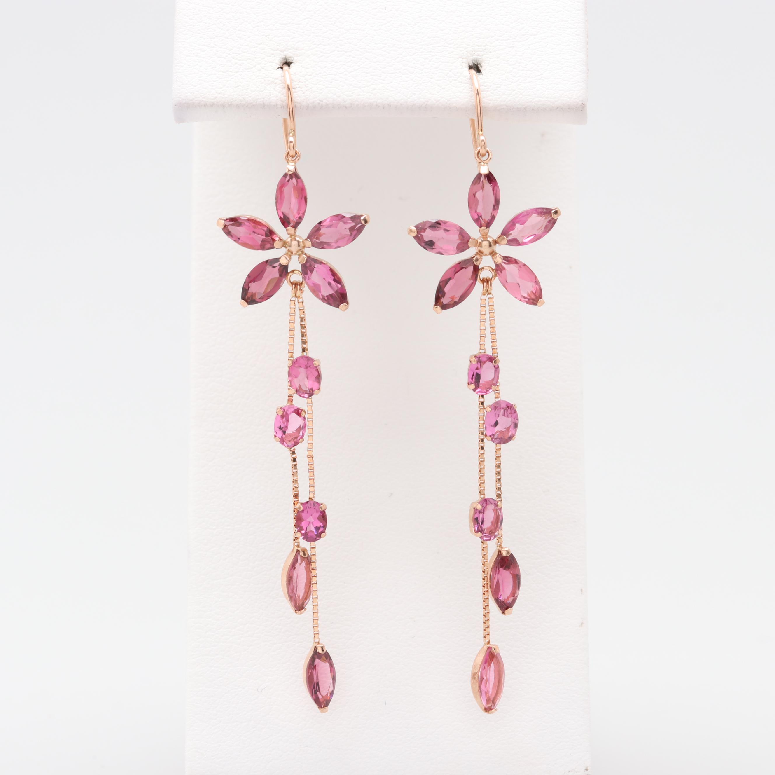 18k Rose Gold Tourmaline Flower Dangle Earrings