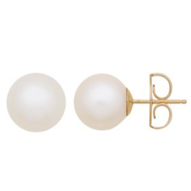 10mm Freshwater Cultured Pearl Stud Earrings In 14k Yellow
