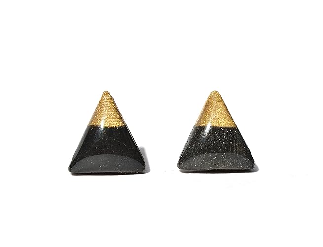 Amazon Com Black And Gold Triangle Stud Earrings