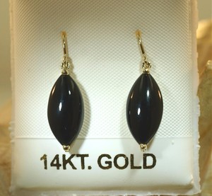 Details About 7x14mm Genuine Natural Marquise Black Coral Solid 14k Yellow Gold Hook Earrings