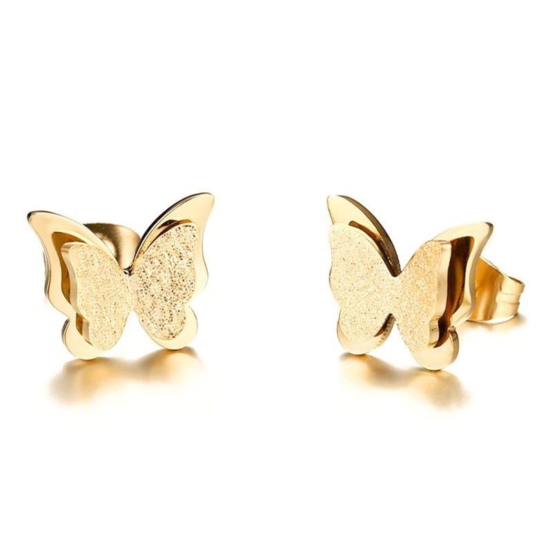 Cz Butterfly Earrings Stud For Women Gold And Rose Gold Color Stainless Steel Charm Fashion Femme Frosted Ear Studs Earing Es 193