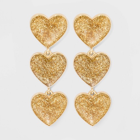 Sugarfix By Baublebar Glittering Tiered Heart Earrings Gold Glitter