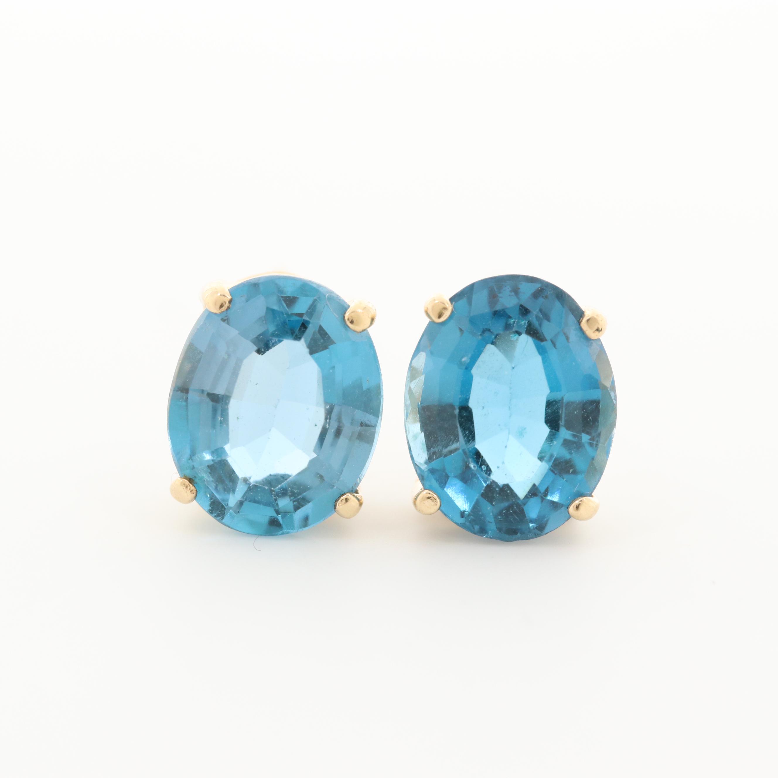 14k Yellow Gold 6x4mm Oval Blue Topaz Earrings