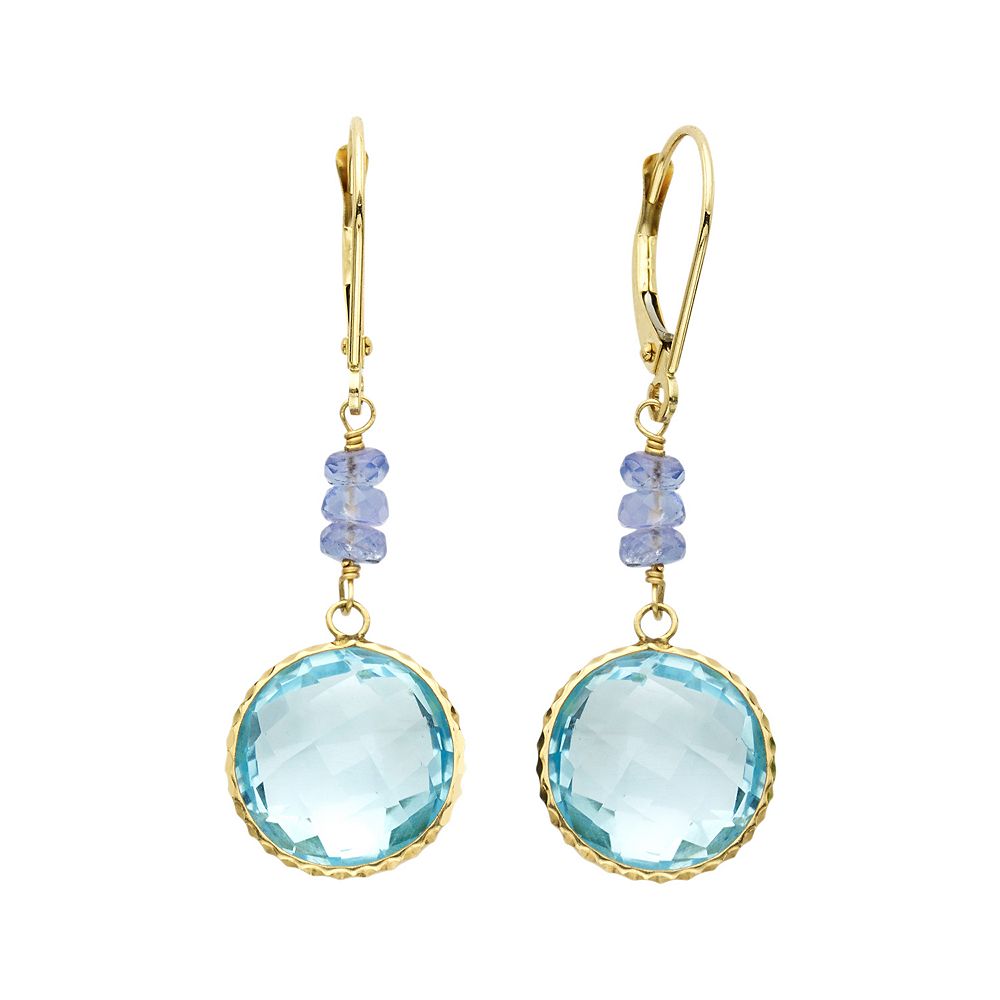 14k Gold Blue Topaz Tanzanite Drop Earrings