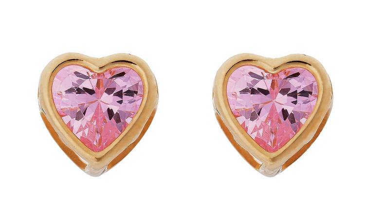 Buy Revere Kid S 9ct Yellow Gold Pink Cz Heart Stud Earrings Kids Earrings Argos