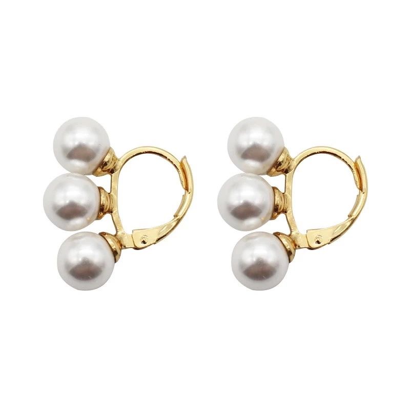 Vintage Golden White Small Imitation Pearls Hoop Earrings For Women Franch Elegant Three Pearls Earrings