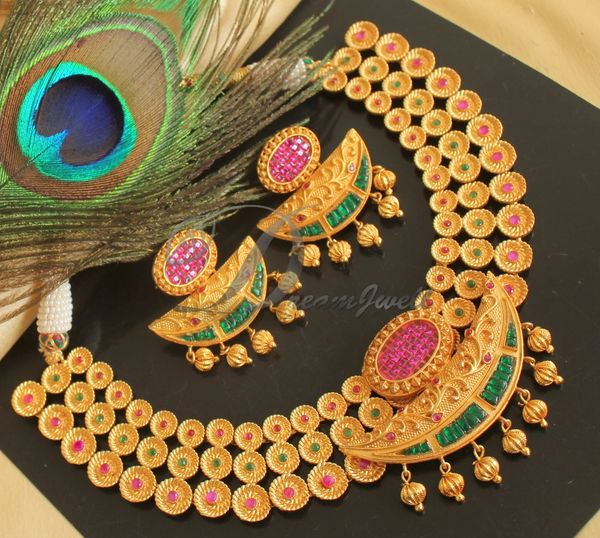 Ethnic Indian Fashion Jewelry 1 Gram Gold Necklace Earrings