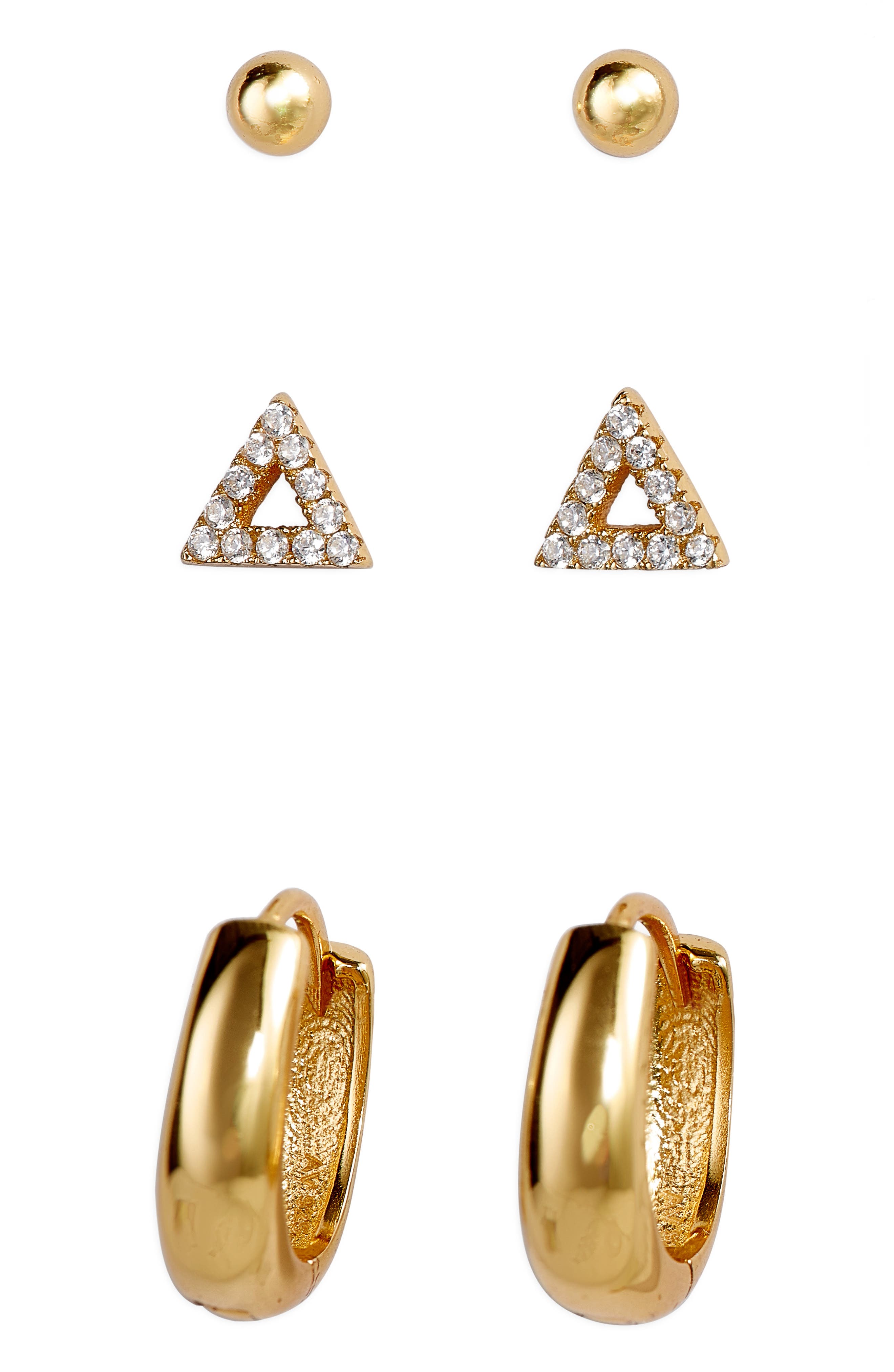 3 set gold earrings. No matter what youre looking for or where you are in the world our global marketplace of sellers can help you find unique and affordable options. Our wide selection is elegible for free shipping and free returns. Palmbeach jewelry tri tone 3 pair set of hoop earrings in gold tone rose tone and silvertone 15 2 sold by sears.