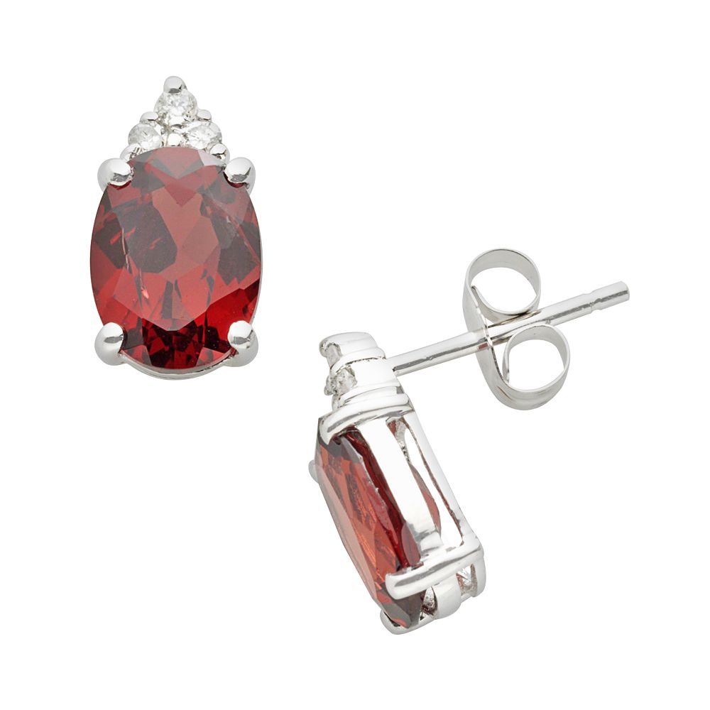 10k White Gold Garnet Diamond Accent Stud Earrings