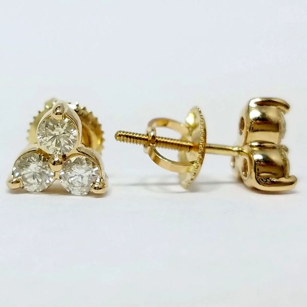 14k Yellow Gold Diamond 3 Stone Cluster Earrings Stud Post Screw Back 0 50 Ct Tw