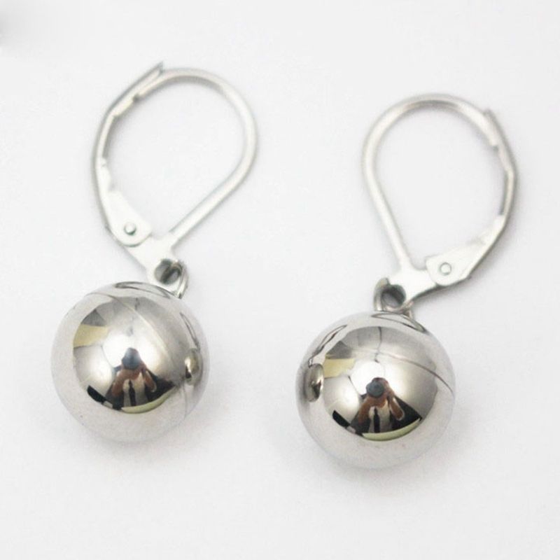 Trendy Shiny Women Silver Clip On Drop Ball Earring 316l Stainless Steel Metal Clip On Earring Dangle Chandelier Earrings Jewelry