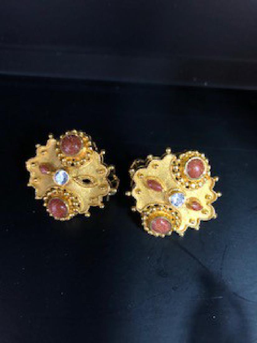 22k Gold Earrings With Sapphire Emerald By Dell Fox